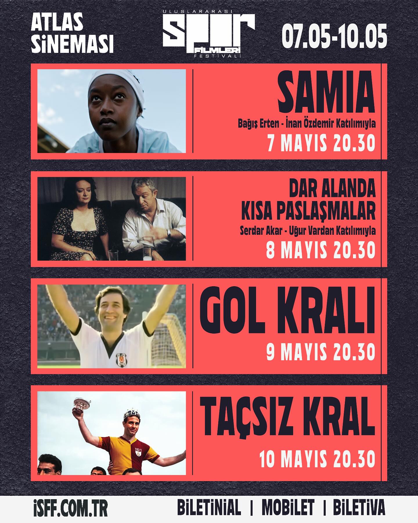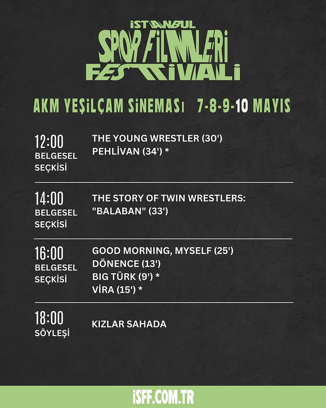 İstanbul Uluslararası Spor Filmleri Festivali belgesel sinemacı Gökçe Kaan Demirkıran direktörlüğünde, sinema yazarı Hayri Çölaşan danışmanlığında 07 – 10 Mayıs 2025 tarihleri arasında gerçekleştiriliyor. Spor temalı kısa film ve belgesel filmler için yeni bir mecra olmayı planlayan film festivali aynı zamanda bu alanda film üretimi yapmak isteyen yönetmenleri ve yapımcıları desteklemeyi de amaçlıyor. İstanbul Uluslararası Spor Filmleri Festivali’nin bünyesinde yer alan forum bölümünde spor belgeseli ya da spor temalı kısa film çekmek isteyenlerin projelerine yapım desteği verilecek, bölümün başvuruları 01 Aralık 2024 tarihinde alınmaya başlanacak.