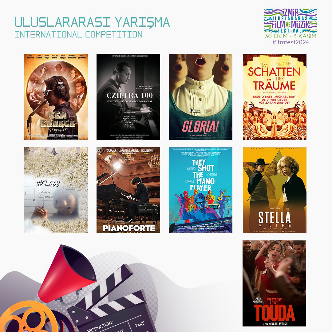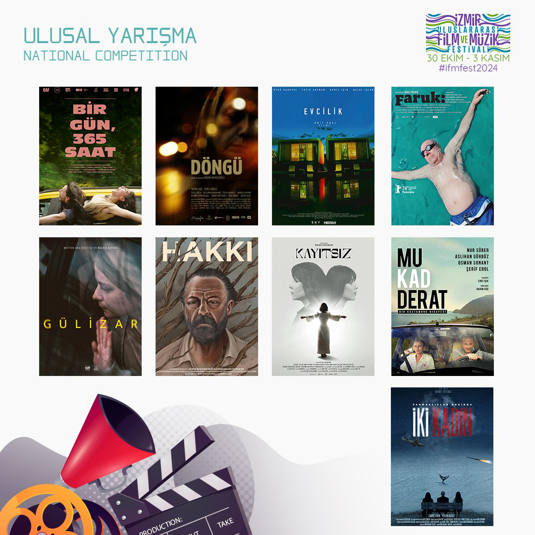 4. İzmir Uluslararası Film ve Müzik Festivali 30 Ekim 2024 Çarşamba günü başlıyor. Ülkemizin önde gelen tematik festivallerinden biri olan ve sinema yazarı Vecdi Sayar’ın direktörlüğünde düzenlenen festival bu yıl T. C. Kültür ve Turizm Bakanlığı’nın İzmir Kültür Yolu Festivali kapsamında yer alıyor. 4. İzmir Uluslararası Film ve Müzik Festivali’nin 12 bölümden oluşan film gösterim programında 6 kıta, 30 ülkeden 58 uzun ve kısa metraj film yer alıyor. Bu yılki festival kapsamında yapılacak Ulusal Yarışma’da 2023 – 24 yapımı ve özgün müziğe sahip 9 film yarışacak. Uluslararası Yarışma’da ise müzik dünyasına odaklanan 19 ülkeden 9 uzun film gösterilecek.