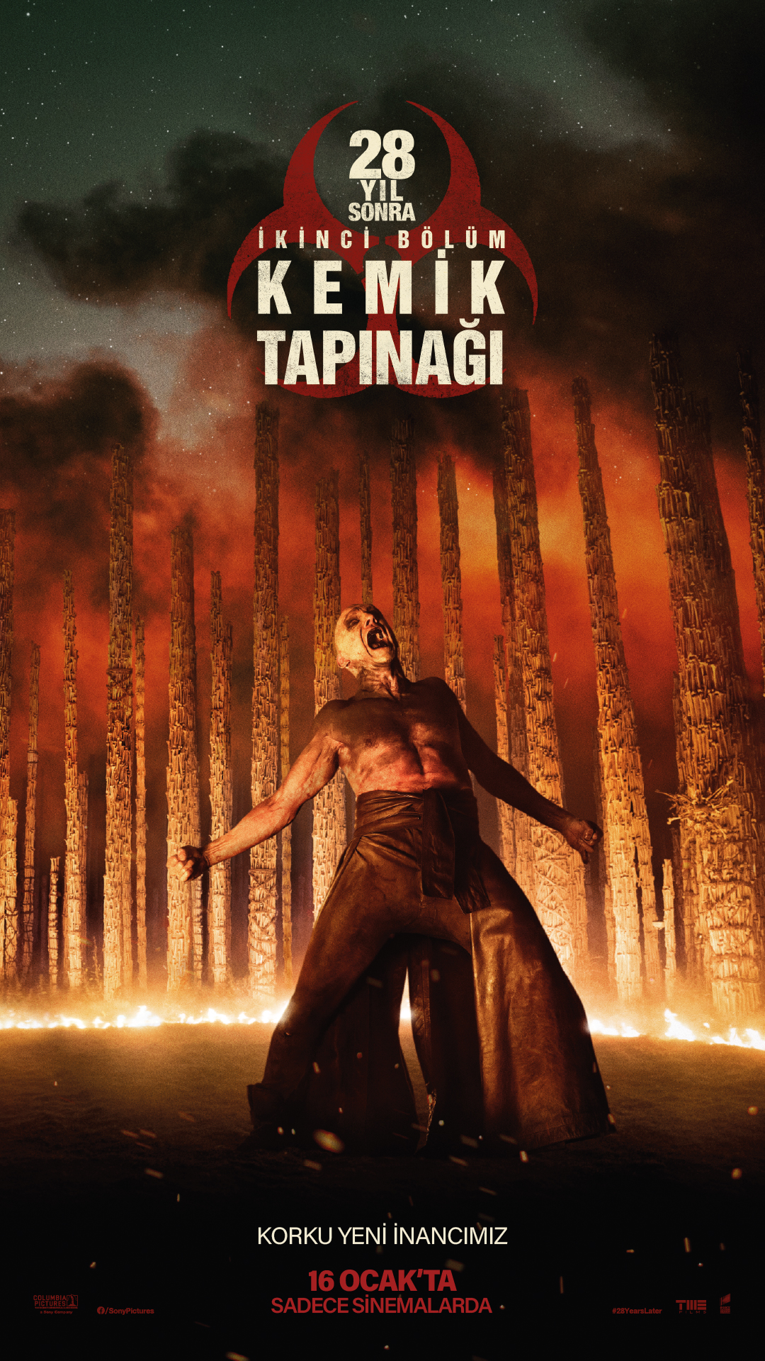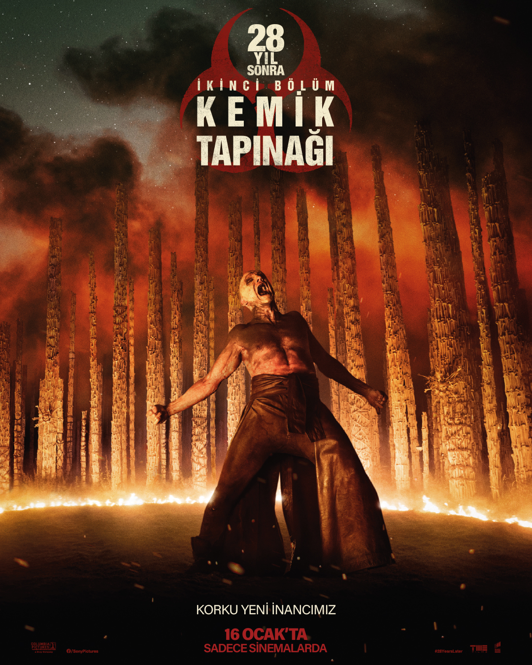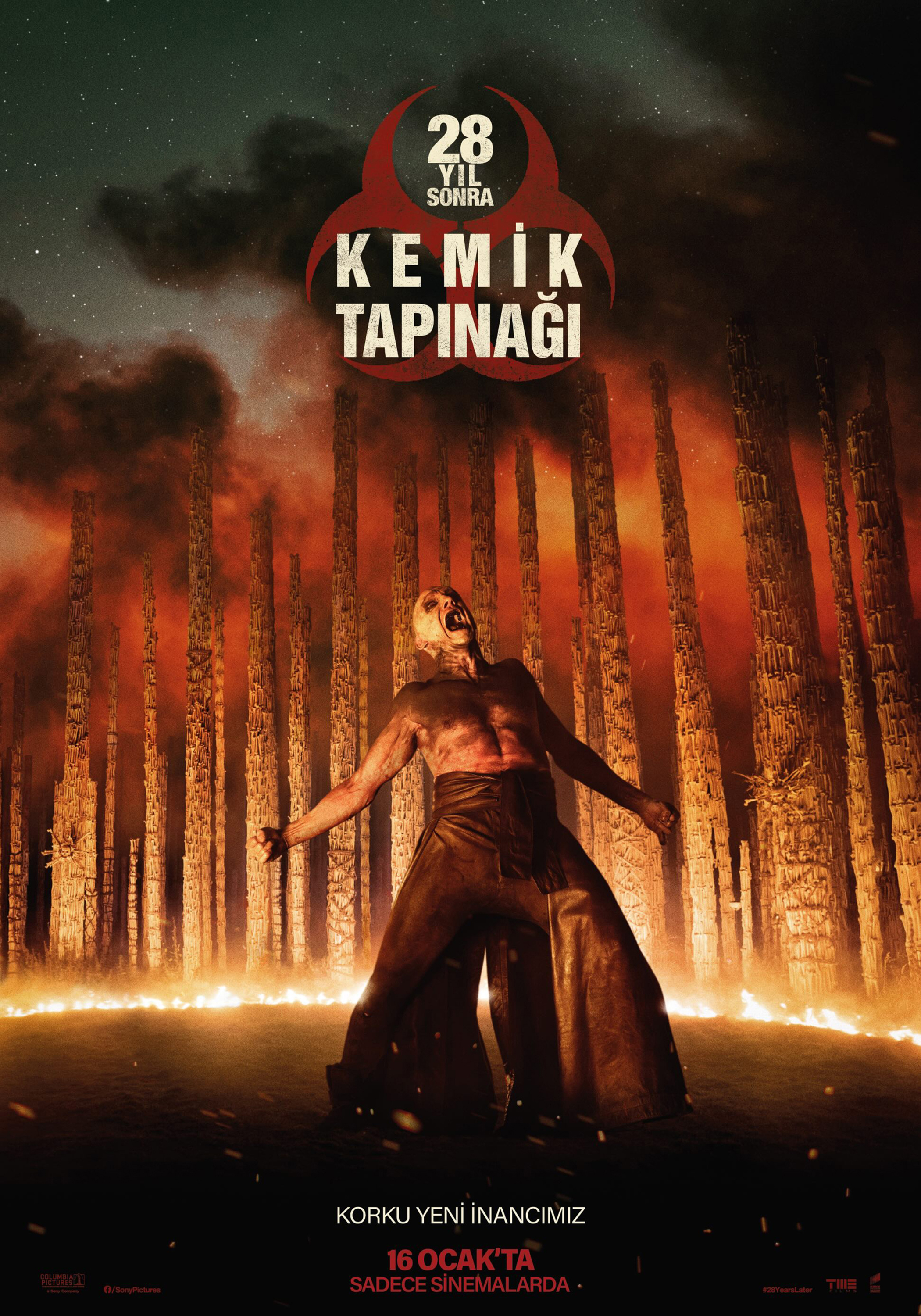 Nia DaCosta’nın yönettiği ve Ralph Fiennes, Jack O’Connell, Alfie Williams ile Emma Laird’in oynadığı 28 Yıl Sonra: Kemik Tapınağı (28 Years Later: The Bone Temple), 16 Ocak 2026’da TME Films dağıtımıyla Sony Pictures tarafından vizyona çıkarıldı.