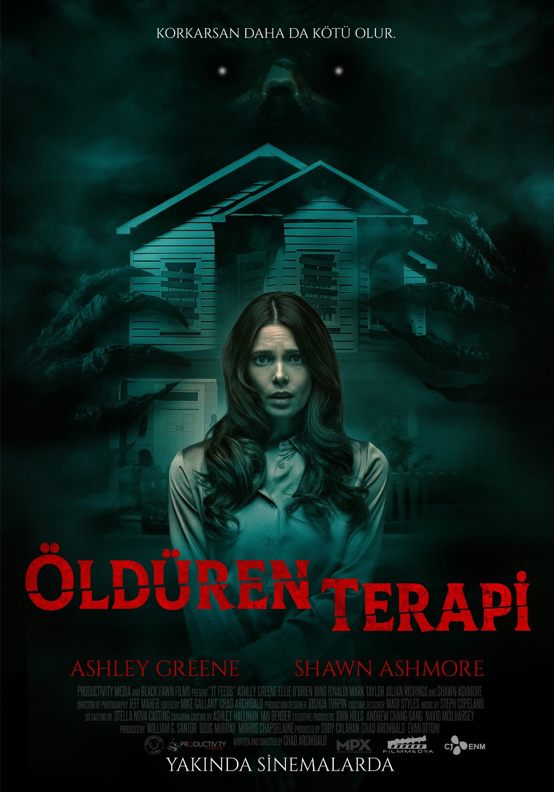 Chad Archibald’ın yönettiği ve Ashley Greene, Ellie O’Brien, Shawn Ashmore ile Brooklyn Marshall’ın oynadığı Öldüren Terapi (It Feeds), 15 Kasım 2025’de CJ ENM dağıtımıyla Film Medya tarafından vizyona çıkarıldı.