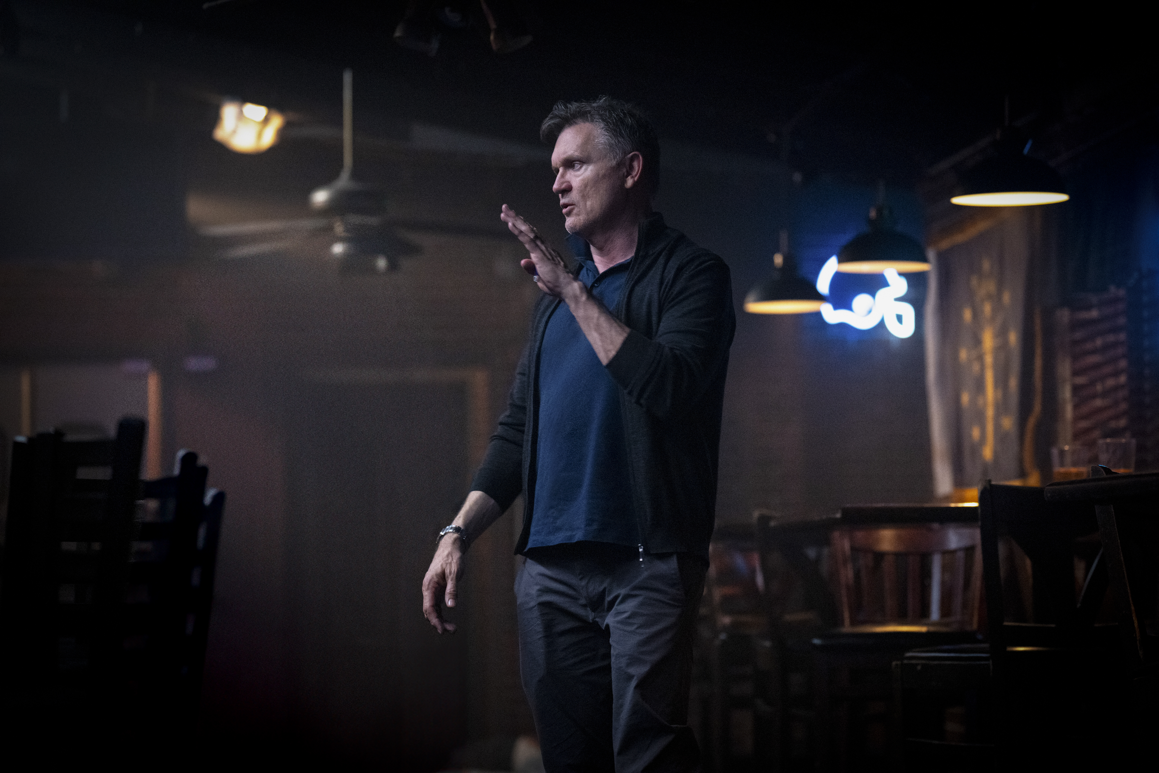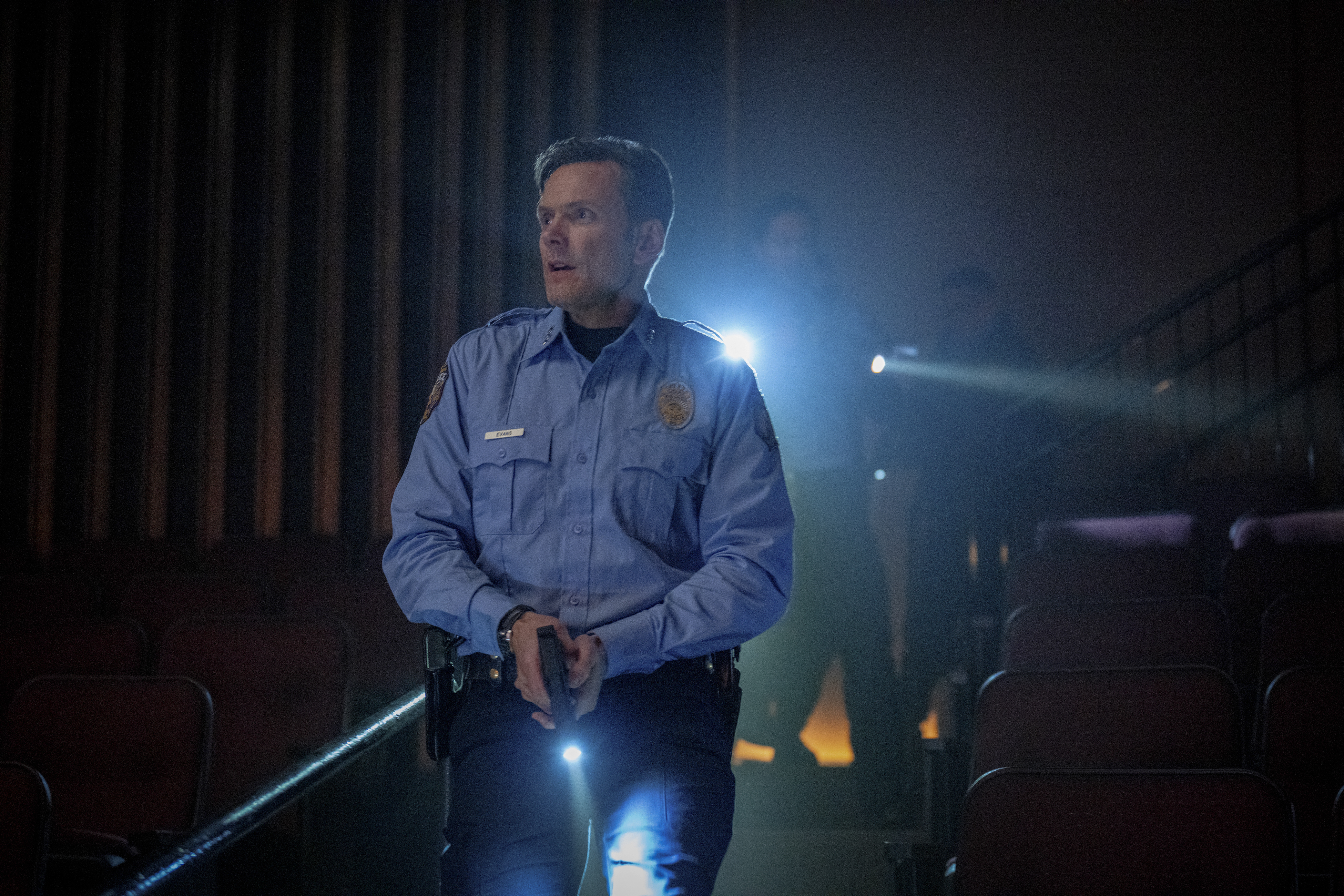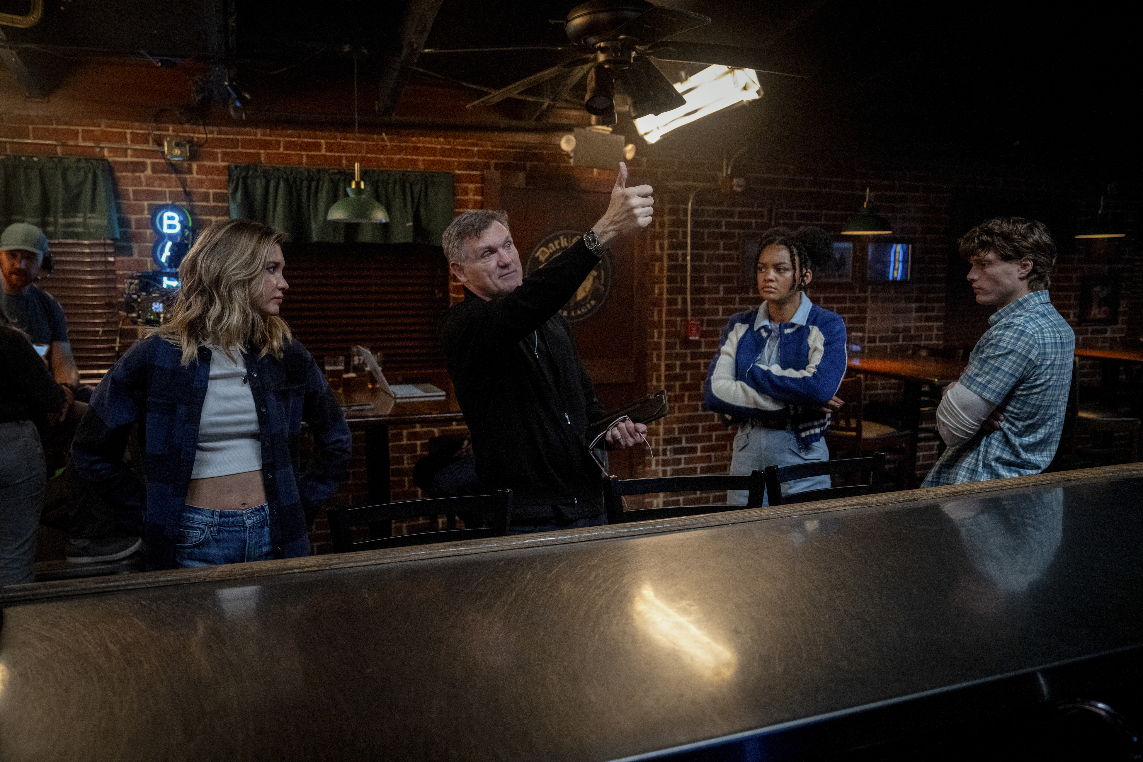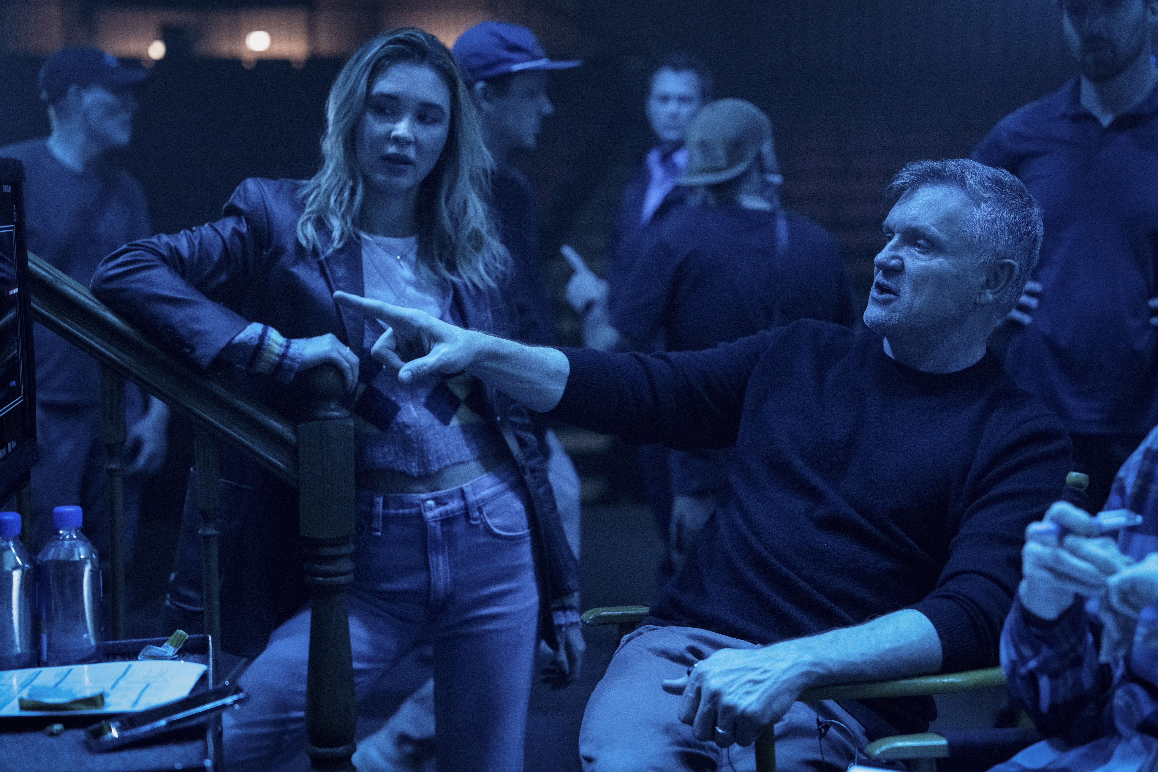 Aşağıdaki kamera arkası fotoğraflarda yönetmen Kevin Williamson görülüyor.