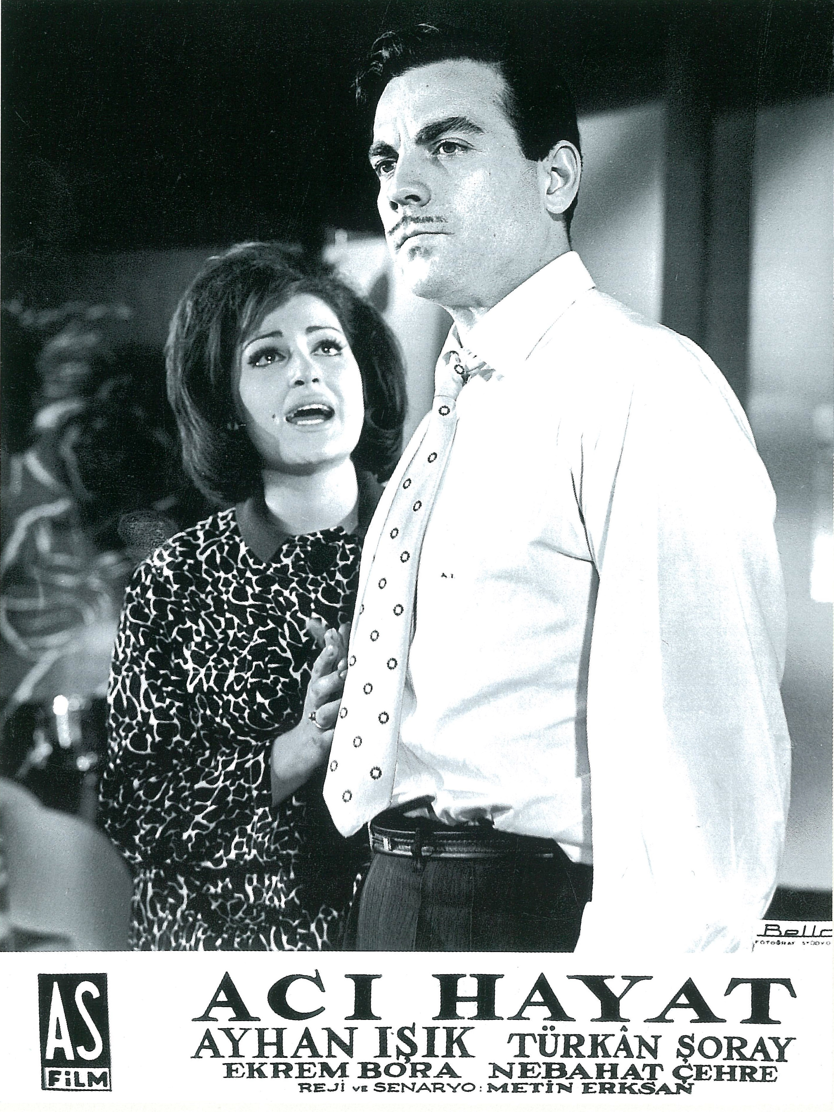 Auteur yönetmenimizin ‘toplumsal gerçekçi’ döneminin en önemli çalışmalarından biri olan 1962 yapımı film, Yeşilçam’ın klasik melodram kalıplarını sosyoekonomik bir eleştiriyle yapıbozuma uğratmasıyla bilinir. Erksan’ın senaryosunu da yazdığı ‘Acı Hayat’ birbirini seven iki yoksul gencin paranın yıkıcı gücü ve bireylerin sınıf atlama tutkusuna çarparak tuzla buz olan sevdalarının trajik öyküsüdür. Film, iki sevgilinin ayrı ayrı yakın yüz planlarıyla açılır. Kasımpaşa tersanesinde kaynakçılık yapan Mehmet (Ayhan Işık) ile bir berberde manikürcü olarak çalışan Nermin’in (Türkan Şoray) tek hayali, Mehmet’in kazancına uygun kiralık bir ev bularak yuvalarını kurmak ve orada çocuklarını büyütmektir.