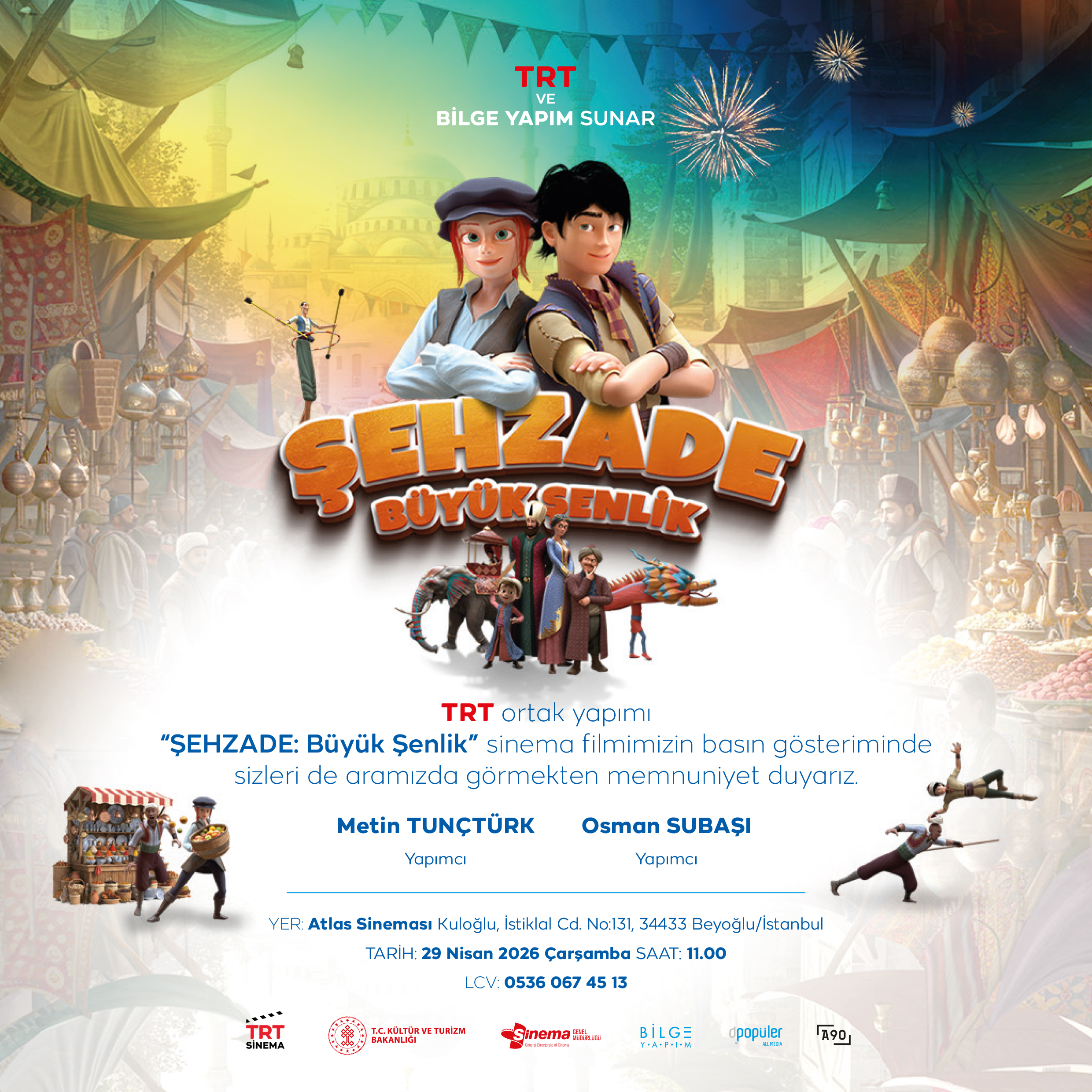 Murat Karahüseyinoğlu ile Hakan Bol’un yönettiği ve Tan Şahinkanat, Ceren Durak, Sinan Pekinton ile Hakan Akın’ın seslendirdiği animasyon film Şehzade: Büyük Şenlik, 01 Mayıs 2026’da A90 Pictures dağıtımıyla Bilge Yapım tarafından vizyona çıkarılıyor.