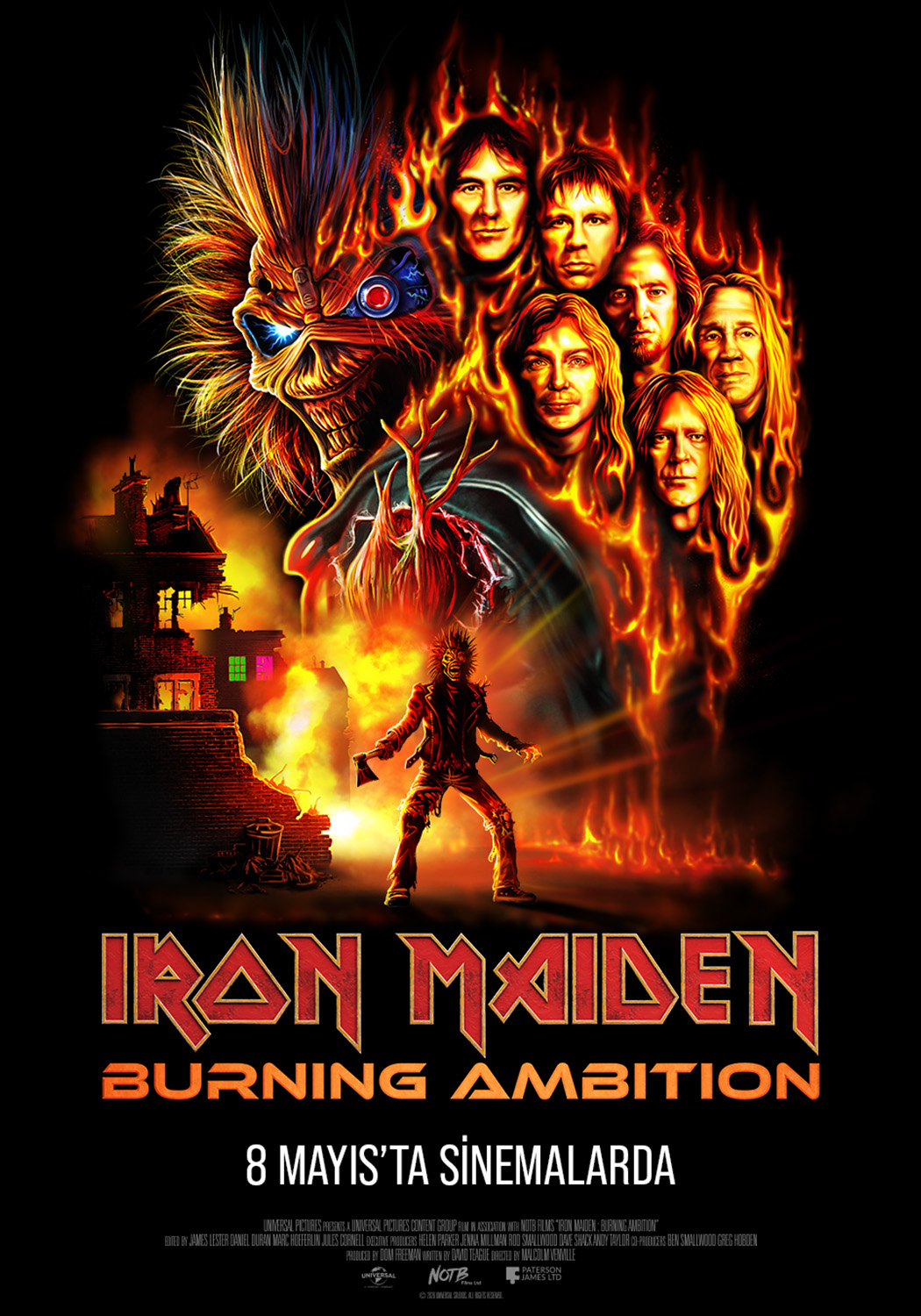 Afiş paylaşılan Iron Maiden: Burning Ambition filmi ülkemiz sinemalarında 08 Mayıs 2026 tarihinde vizyona giriyor. Malcolm Venville’in yönettiği ve Iron Maiden’in rol aldığı belgesel Iron Maiden: Burning Ambition, Iron Maiden grubunun bir kültürel hareketin şekillenmesine nasıl katkı sağladığını, rock müziğe ve heavy metalin toplum ve kültür üzerindeki geniş etkilerine dair yerleşik bakış açılarını nasıl zorladığını inceliyor. Grup üyelerinin yanı sıra Javier Bardem, Lars Ulrich ve Chuck D gibi isimlerle yapılan röportajlara yer veren bu çarpıcı film, Iron Maiden’ın tavizsiz vizyonuna ve dünya çapındaki hayran ordusuyla kurduğu sarsılmaz bağa yakından bir bakış sunuyor.