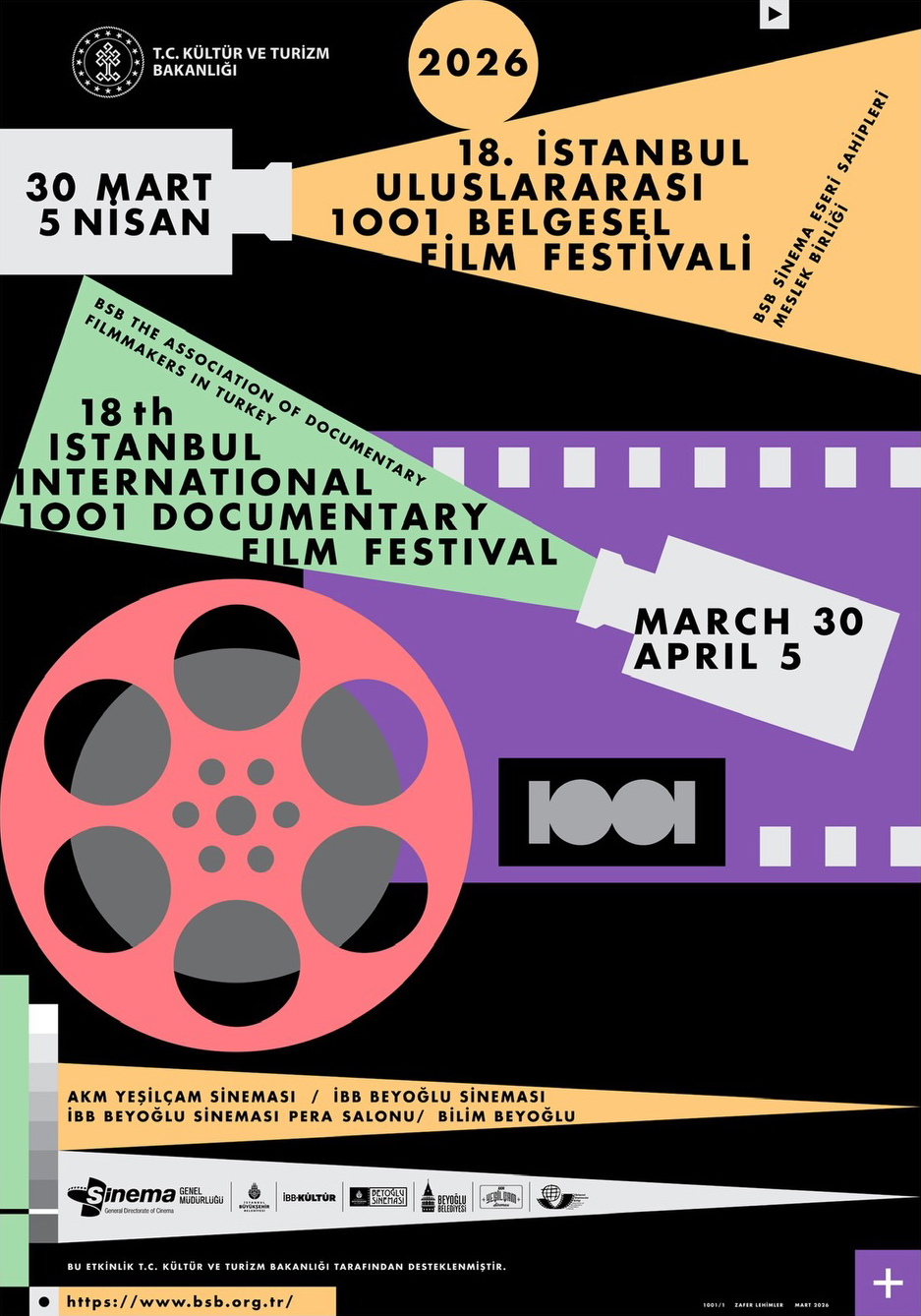 T.C. Kültür ve Turizm Bakanlığı Sinema Genel Müdürlüğü’nün desteğiyle; BSB Sinema Eseri Sahipleri Meslek Birliği tarafından düzenlenen 18. İstanbul Uluslararası 1001 Belgesel Film Festivali’nin açılış töreni 30 Mart günü saat 19:00’da AKM Yeşilçam Sineması’nda yapılıyor. Töreninin ardından, 21:00’de, 2026 Akademi Ödülleri En İyi Uzun Metraj Belgesel Adayı Kayaları Delmek (Cutting Through Rocks) adlı film gösterilecek. Festivalin ilk günü, AKM Yeşilçam Sineması’nda saat 13:00’te, Abel filminin yönetmeni Fabian Volti, saat 16.00’da ise Okurimono filminin yönetmeni Laurence Leveque, gösterimler sonrası izleyicilerle bir araya gelecek.